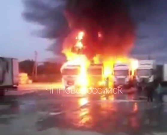 Telegram-каналов. По словам очевидцев, изначально загорелись две фуры, после чего огонь перекинулся на другие грузовики.